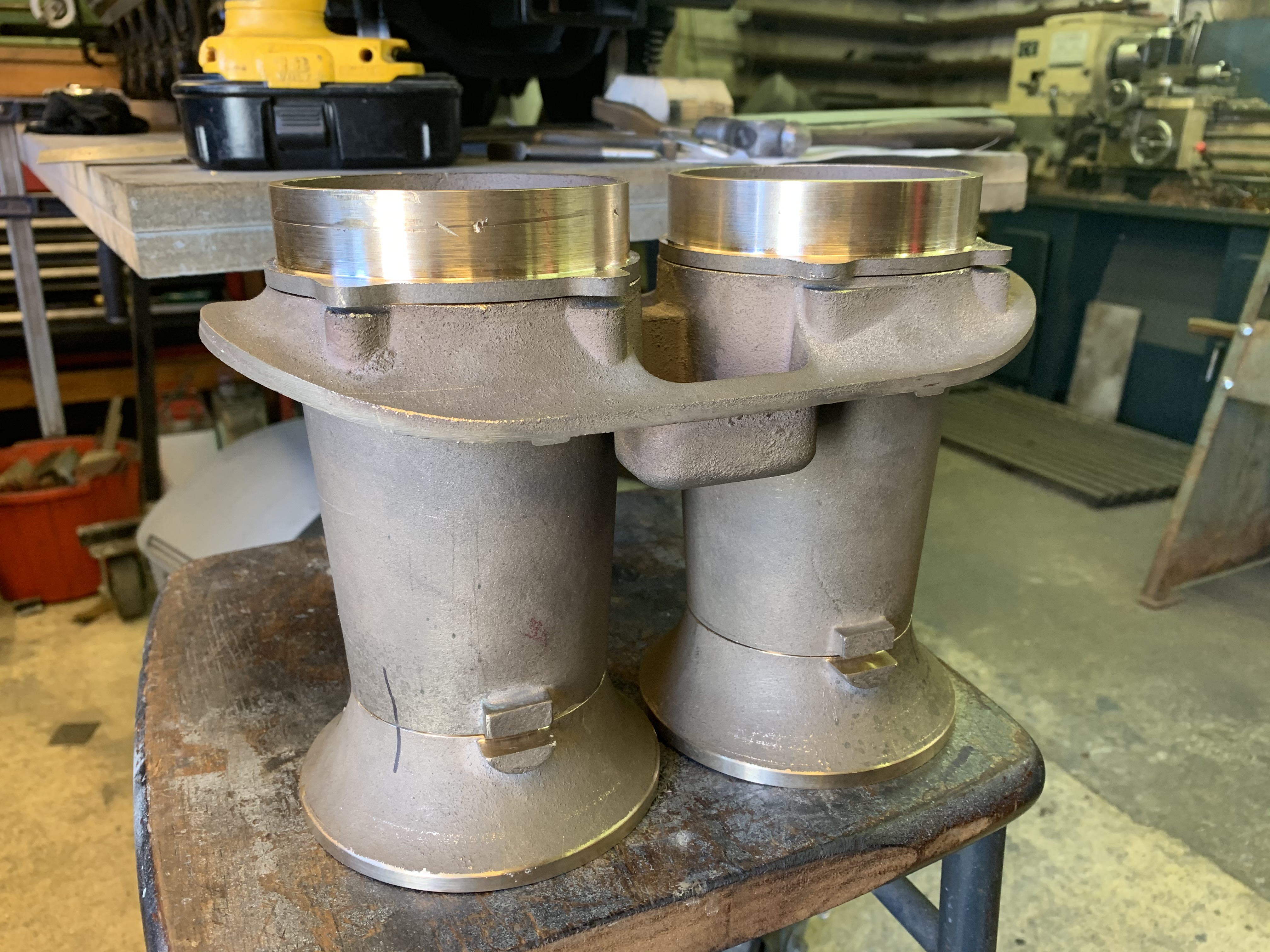 Getting the smoke box sorted just got to turn it now all 150lbs of it. While I was waiting for the metal for the cage which I had to make to hold it I decided to turn and mill the stacks as the pictures show.